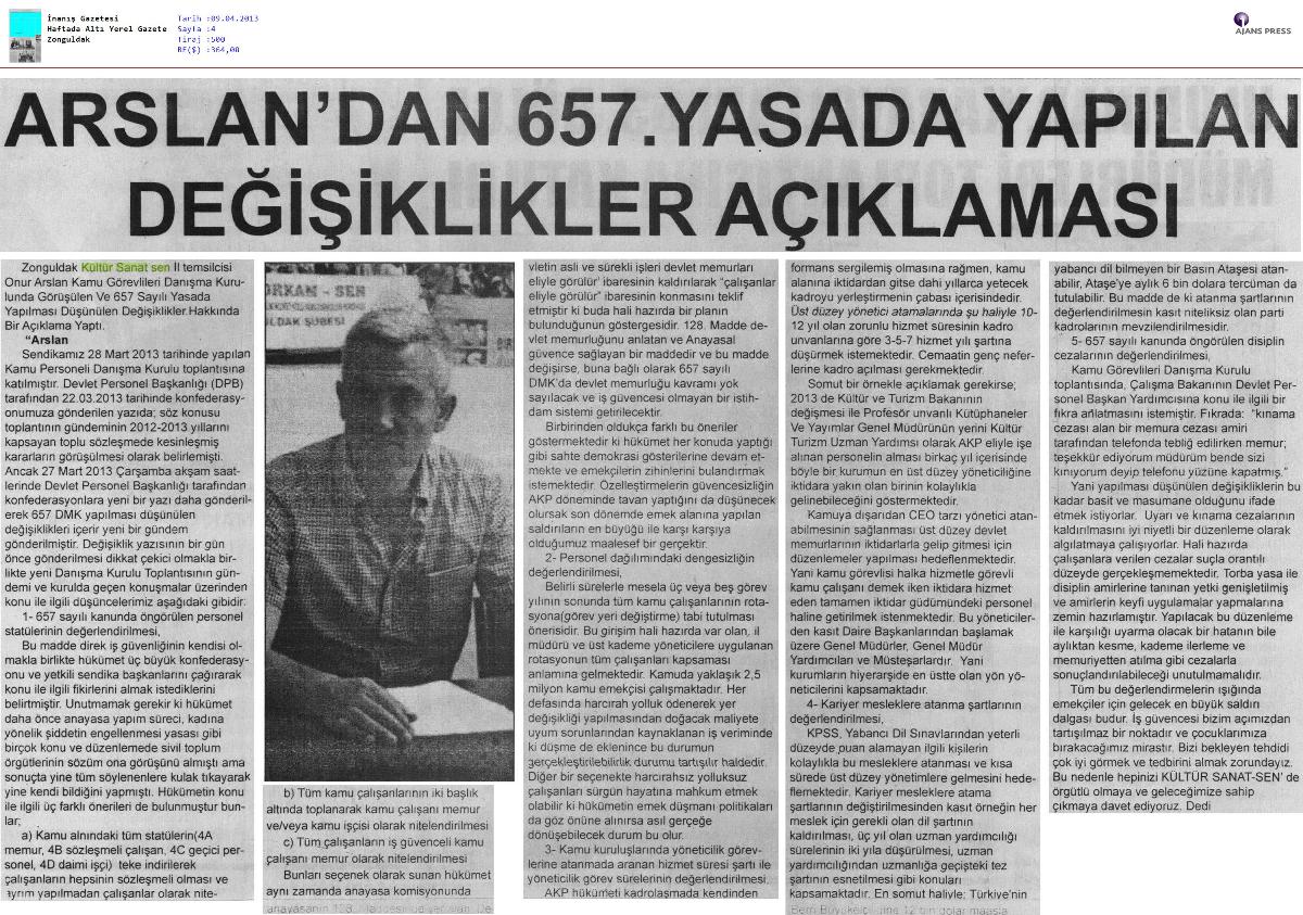 ARSLAN'DAN 657. YASADA YAPILAN DEĞİŞİLİKLER AÇIKLAMASI