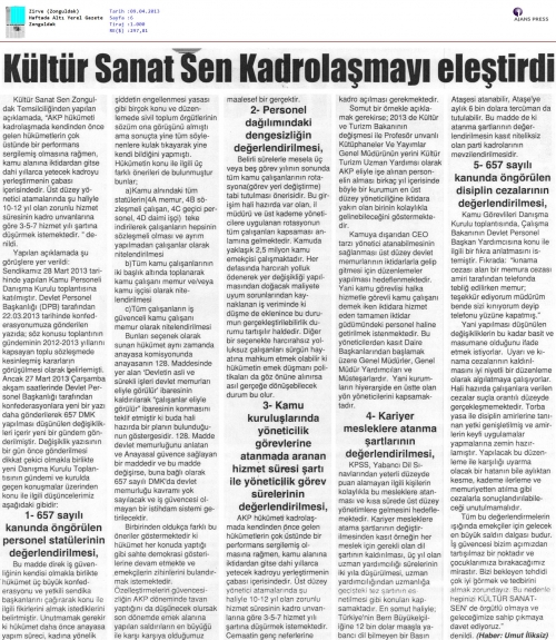 KÜLTÜR SANAT SEN KADROLAŞMAYI ELEŞTİRDİ!